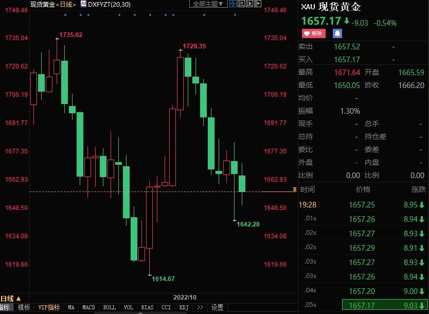 现货黄金回吐上周全部涨幅,时隔两周重新收跌,盘中创9月29日以来新低至1642.28美元/盎司。尽管各界担心美联储过度加息,但美国通胀数据持续高位运行,彻底打消市场对美联储放慢加息节奏的预期。