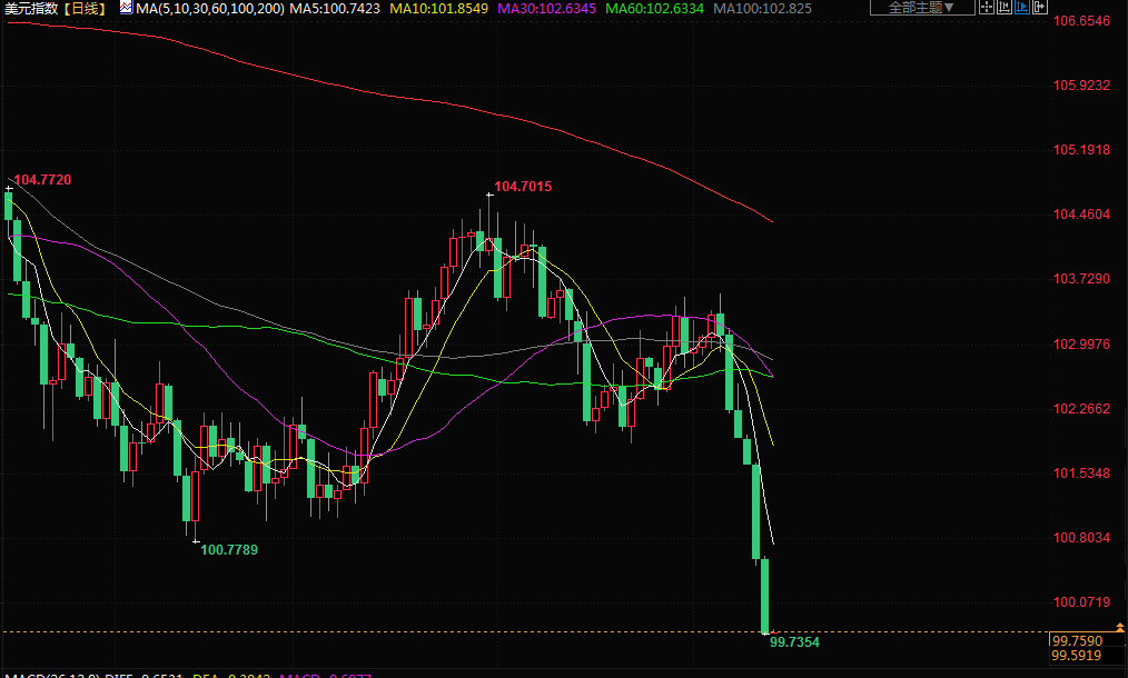 美元指数势将创下2023年以来的最大单周跌幅。