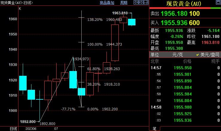 周五(7月15日),国际金价自日内刷新的6月16日以来高位1963.62美元/盎司回落转跌,但周线有望录得4月初以来最大涨幅(逾1.6%),因市场下调对美联储进一步加息的预期,导致