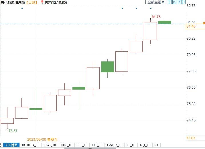 布伦特原油(Brent Crude)周三确实突破了每桶80美元,这是自5月初以来首次突破这一门槛。在数据显示美国6月份通胀率降至3%,低于预期的3.1%之后,WTI原油价格收于11周以来的最高水平,突破每桶75美元。两年多来最低的通胀数据受到了市场的欢迎,尽管分析师表示,这不足以阻止美联储在本月晚些时候再次加息。