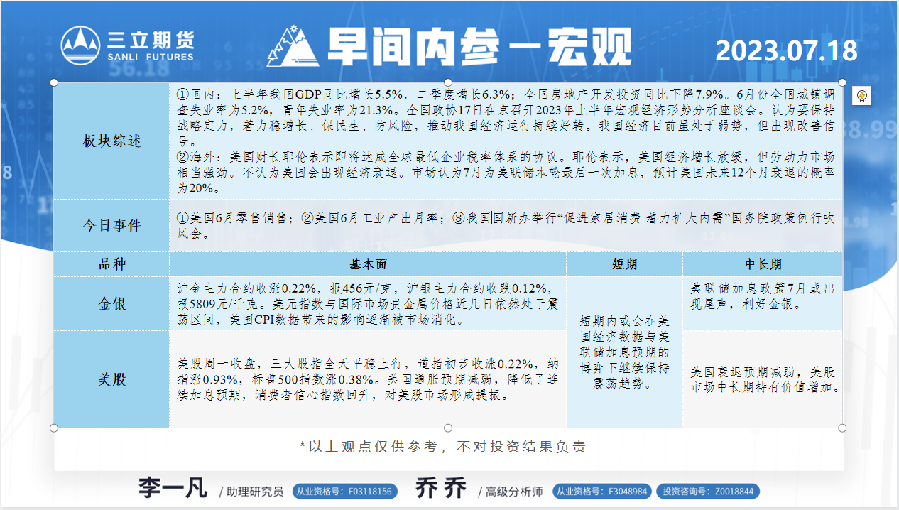 标题:三立期货7月18日早间内参——宏观