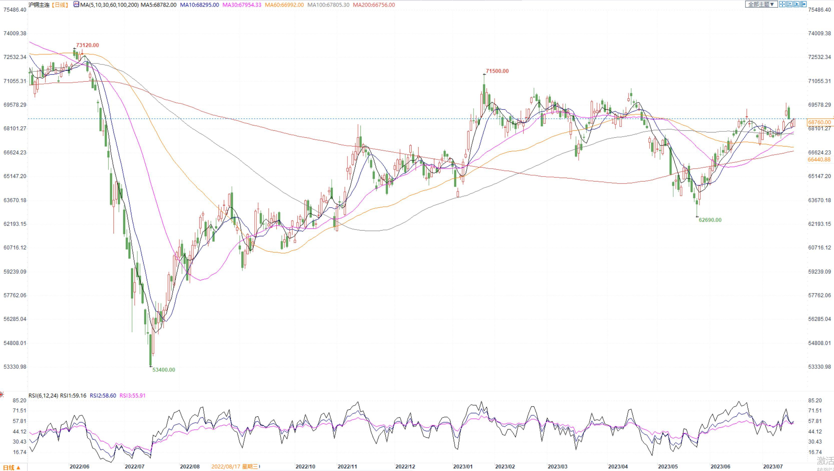 周三,郑糖夜盘走低,早盘震荡回升,成交量和持仓量均减少。据云南糖网,广西现货价格上调10元/吨。国际市场供应担忧被逐步消化。但印度降雨不均匀产生新的供应忧虑。国内来看,有效供应增加有限,6月进口量低于预期。总体来看,糖价下方仍存支撑,尤其是近月2309合约。操作上建议短线交易为主。