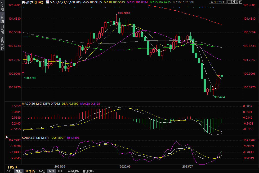 美元兑一篮子货币周四上涨0.55%,美元指数最高触及100.97,为7月12日以来新高,收报100.83,此前数据显示美国上周初请失业金人数意外下降,提升了这样的预期,即如果经济保持强劲,美联储可能会继续加息。
