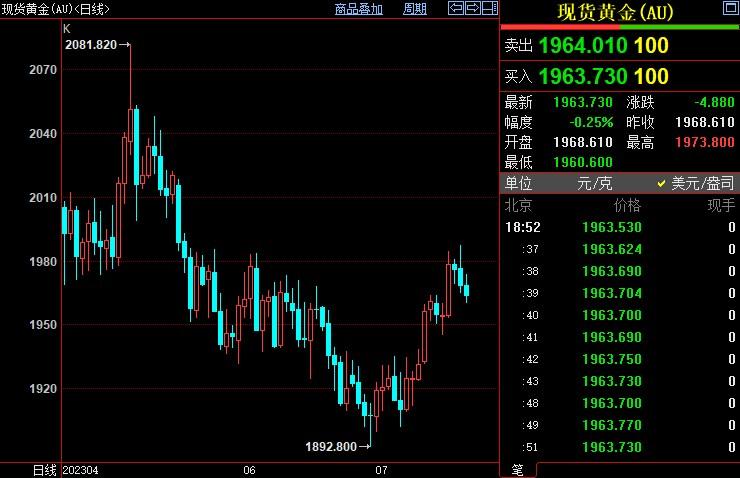 现货黄金累计上涨0.42%至1963.47美元/盎司;