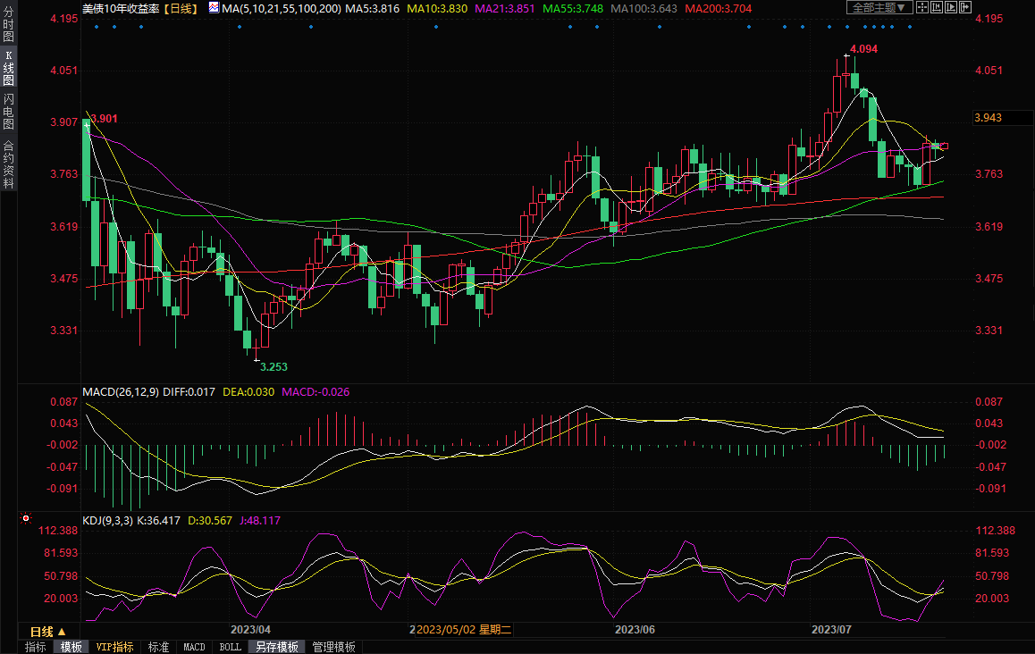 10年期国债收益率上周五下跌1.1个基点,至3.842%。与此同时,对利率敏感的两年期国债收益率上周五上涨1.1个基点,至4.850%。