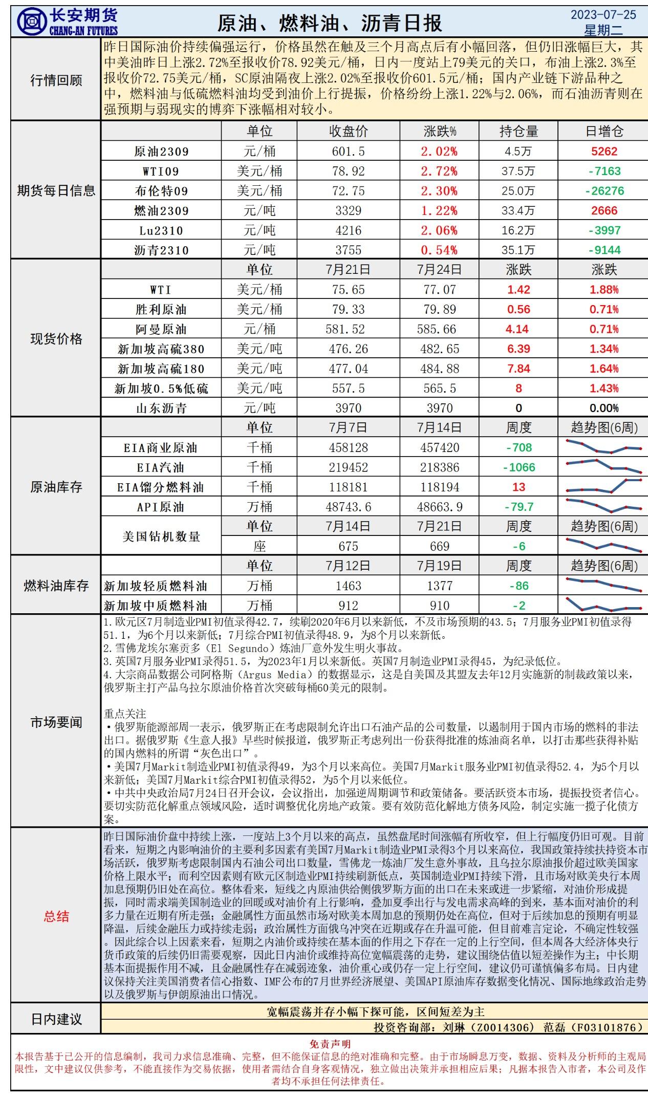 标题:长安期货7月25日原油早评:美国制造业回暖油价持续上行,高位震荡之际关注IMF展望与库存数据