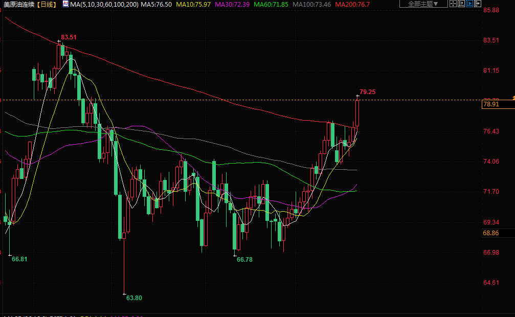 瑞穗银行能源期货主管Bob Yawger表示,升穿200日移动均线“通常会让(投机性)空头止损离场(并)吸引交易员寻找新的入市点”。