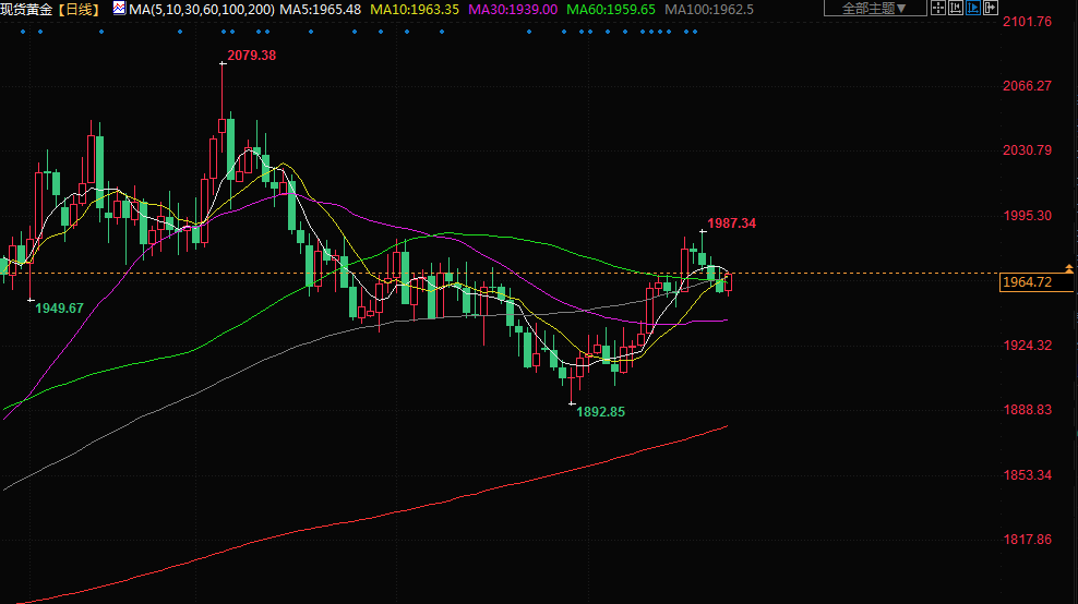 商品收盘情况:美国期金收报每盎司1963.70美元,上涨0.1%。