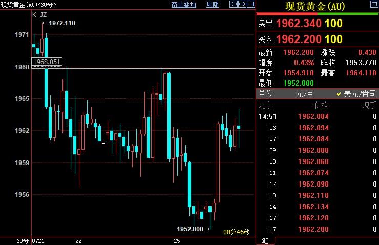 周二(7月25日),国际金价在触及逾一周低位1953.12美元/盎司后反弹,受益于美元走弱。交易员等待美联储加息并就货币政策前景给出新的线索。金价短线阻力上看1968美元。