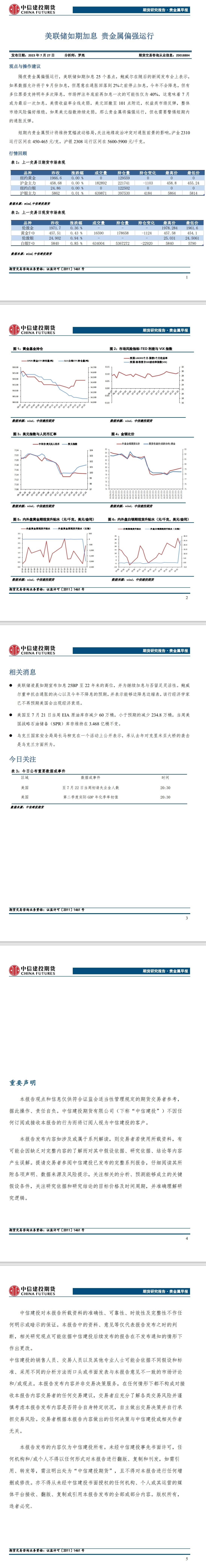 标题:中信建投期货7月27日贵金属早报:美联储如期加息 贵金属偏强运行