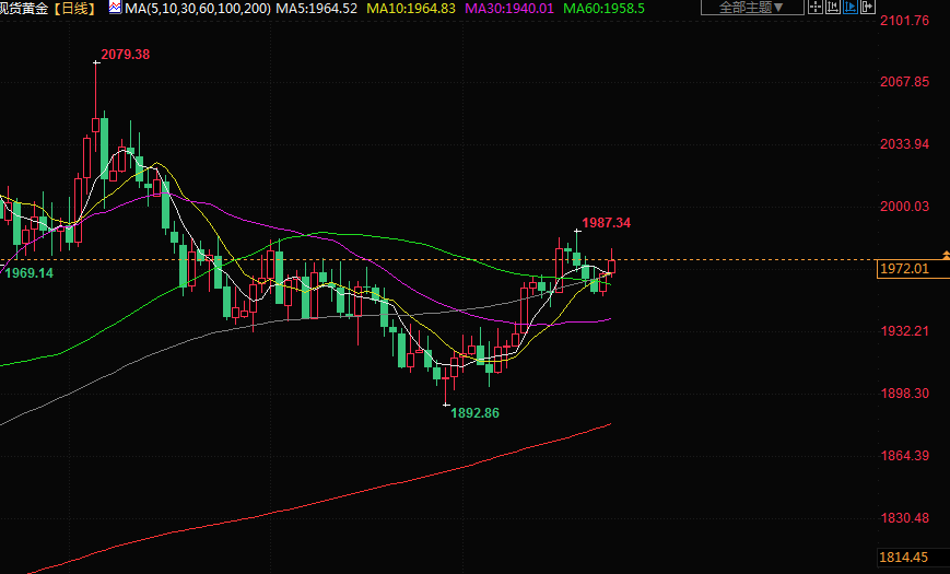 商品收盘情况:美国期金收涨0.3%,结算价报1970.10美元。