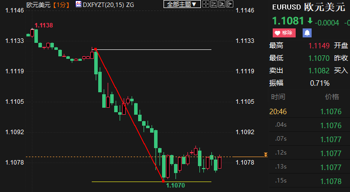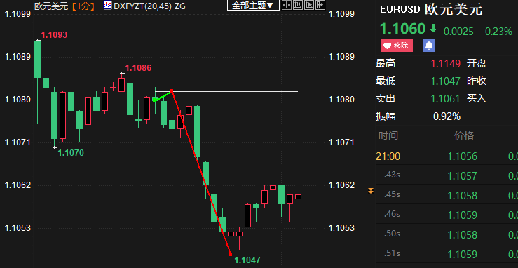 欧元兑美元下跌33点至1.1047,自欧银新政公布以来累计下跌逾80点。
