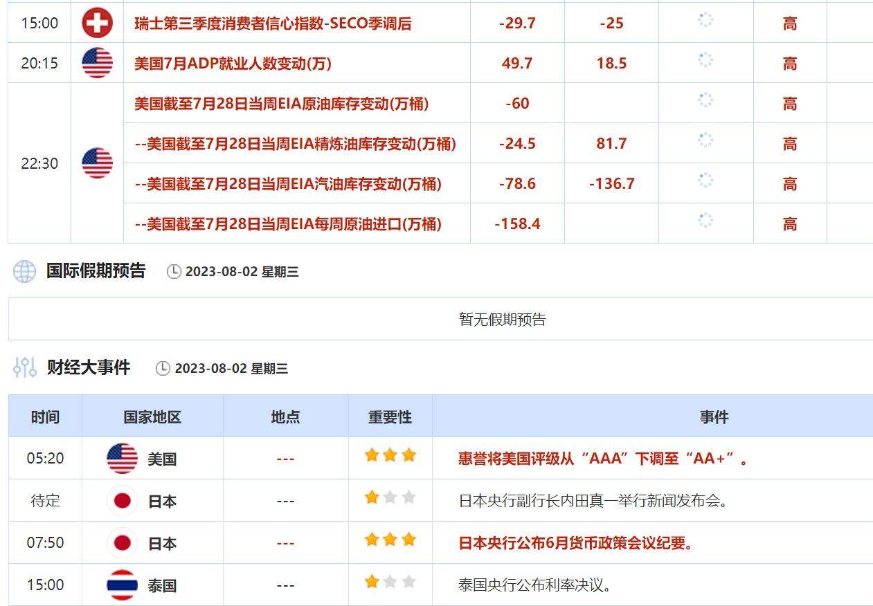 此前显示美国制造业和建筑业相对稳健的数据,盖过了职位空缺降至两年多来以来最低水平的影响。当地时间周二收盘后,国际评级机构惠誉宣布将美国的信用评级从“AAA”下调至“AA+”;并预测美联储9月还将加息。