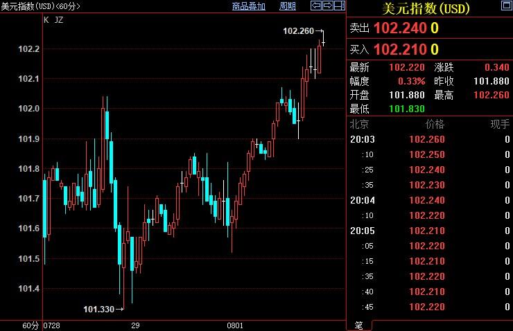 美元指数上涨0.33%至102.222。