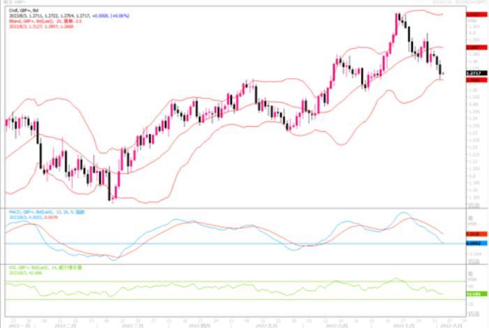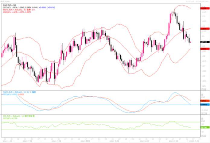 当日下跌0.45%,报1.272美元,盘中最低触及1.2681。隔夜市场上,由于受到私企极为强势增长的就业报告抬捧,美元继续呈强势回升,英镑为此继续大幅度下滑。虽然本周四将迎来英国央行的利率会议,但对于加息的幅度,市场意见颇有争议。一方意见认为,自英国央行上次会议以来,7月公布的通胀数据显示,英国6月消费者物价较上年同期涨幅降至7.9%,低于预期,但在七国集团(G7)经济体中仍然是最高的。因此,英央行本周会议仍有可能要继续加息50个基点。对于这种意见,货币市场给出的概率只有37%。另一种意见认为,数据显示经济增长乏力。周二的一项调查显示,尽管价格压力减弱,但受利率上升和新订单减少的影响,7月份英国制造业产出以七个月来最快的速度萎缩。再加上英国通胀出现缓解迹象,预计英国央行将加息25个基点。货币市场对于25个基点升息预期给出的概率为63%。如果周四英央行仅加息25个基点,料将给不到英镑太大的抬捧作用。若加息50个基点,或能暂时稳住近期大幅下滑的势头。日线图上,镑美继续呈下跌走势逼近布林带通道下轨,技术指标继续下摆之中,显示英镑的抛盘压力唯有改观的迹象。需继续防范镑美的进一步走低风险。