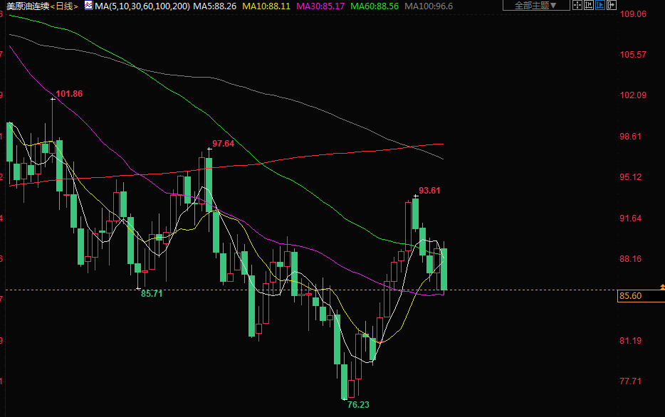 商品收盘情况:布伦特原油期货下跌3.1%,报收于每桶91.63美元;美国原油下跌3.9%,至85.61美元。美国期金收于1649.50美元,下跌1.6%。