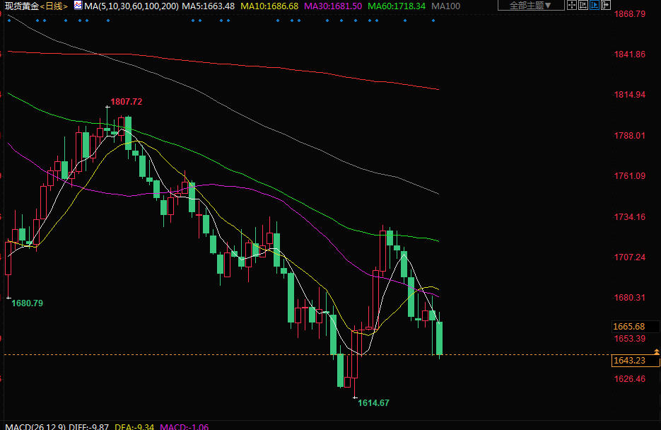 金价上周五下跌超过1%,并迎来自8月中以来最糟糕的一周,受美元走强和对美联储将坚持大幅加息以遏制通胀的担忧拖累。道明证券商品策略师Daniel Ghali说,金价与美元走势的关联性越来越大,可能会跌至每盎司1600美元的低点。