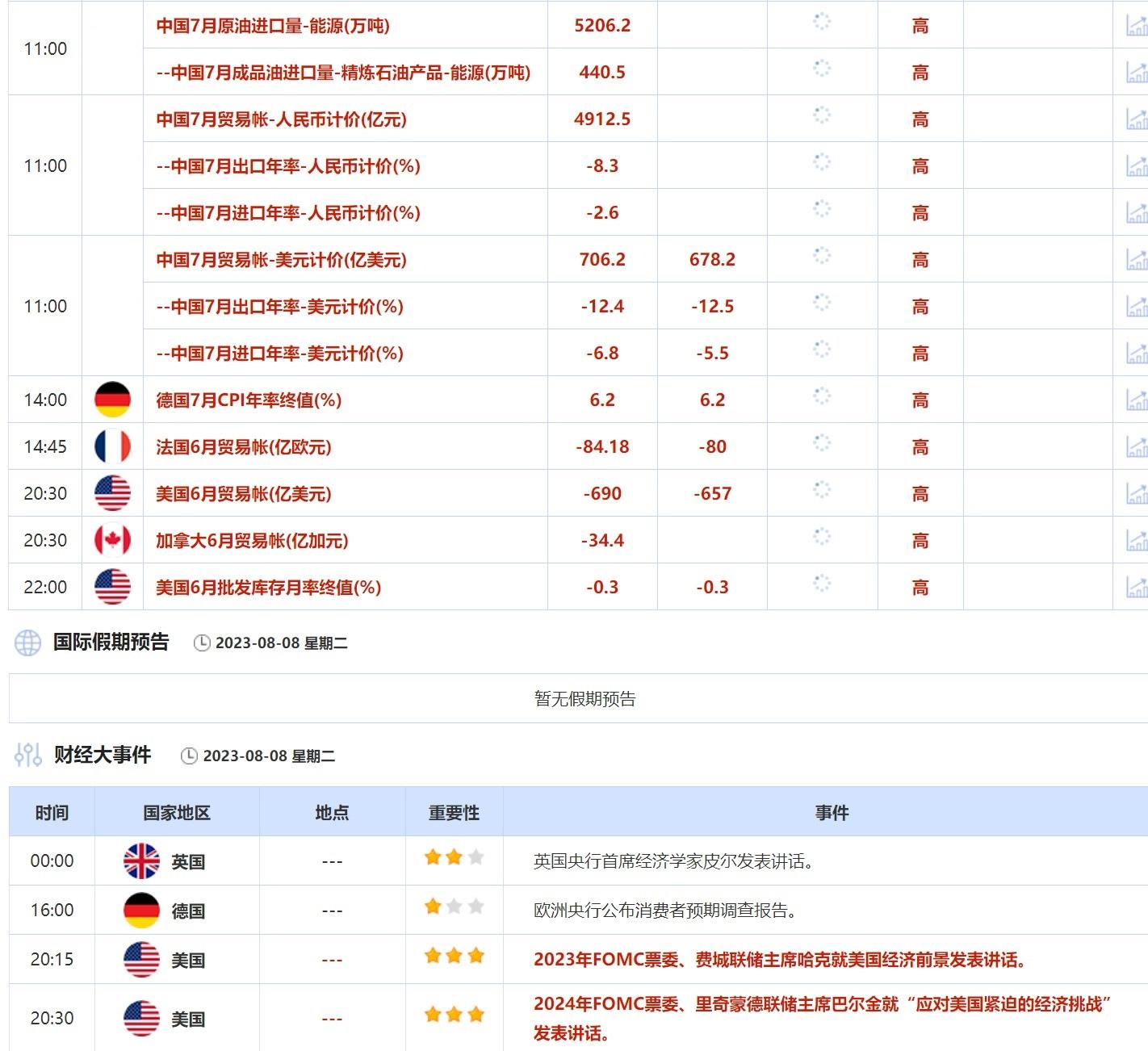 ②8月8日(周二)关键字:美国6月贸易帐,费城联储主席哈克
