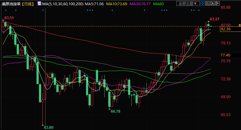 美原油交投于82.33美元/桶附近;油价周一在连续六周上涨之后收低,上周六暂停的波兰中部的德鲁日巴(Druzhba)输油管道预计周二恢复,供应紧张缓解,美联储官员称9月或进一步加息,引发需求趋软担忧回升。