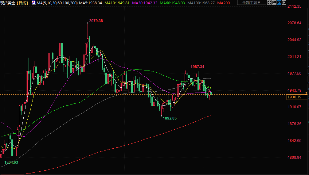 白银下跌约2.2%,至每盎司23.09美元;铂金下跌0.1%,至920.89美元。钯金下跌1.2%,至1241.20美元。