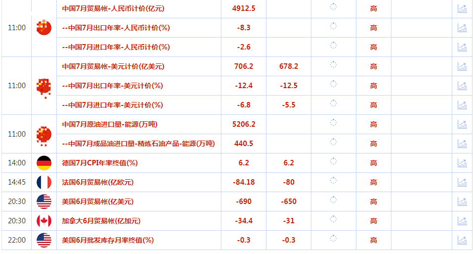 投资者也开始关注即将公布的美国通胀数据。周四公布的美国数据预计将显示,7月核心物价料同比上涨4.7%。