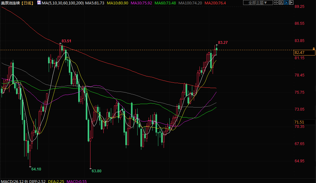 布伦特原油期货收跌1.04%,结算价报每桶85.34美元。美国原油期货收跌1.06%,结算价报每桶81.94美元。