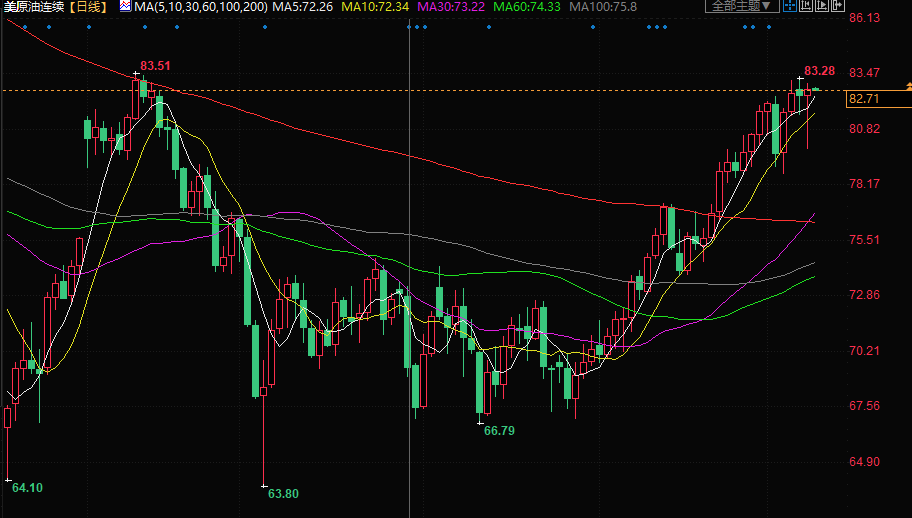 美原油交投于82.73美元/桶附近;油价周二触及80美元/桶关口后攀升,早间穆迪将美国10家中小型银行的评级下调担忧情绪增加,但因受益于EIA上调美国经济预估,美联储哈克称,或许已达可维持利率不变阶段,油价收涨。
