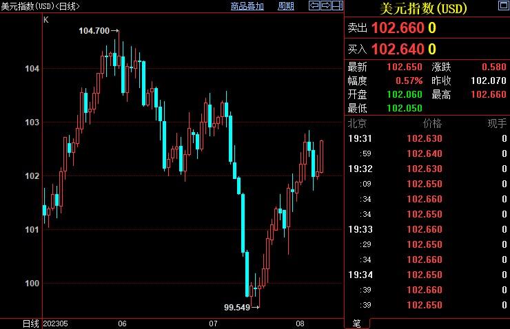 美元指数上涨0.57%至102.657。
