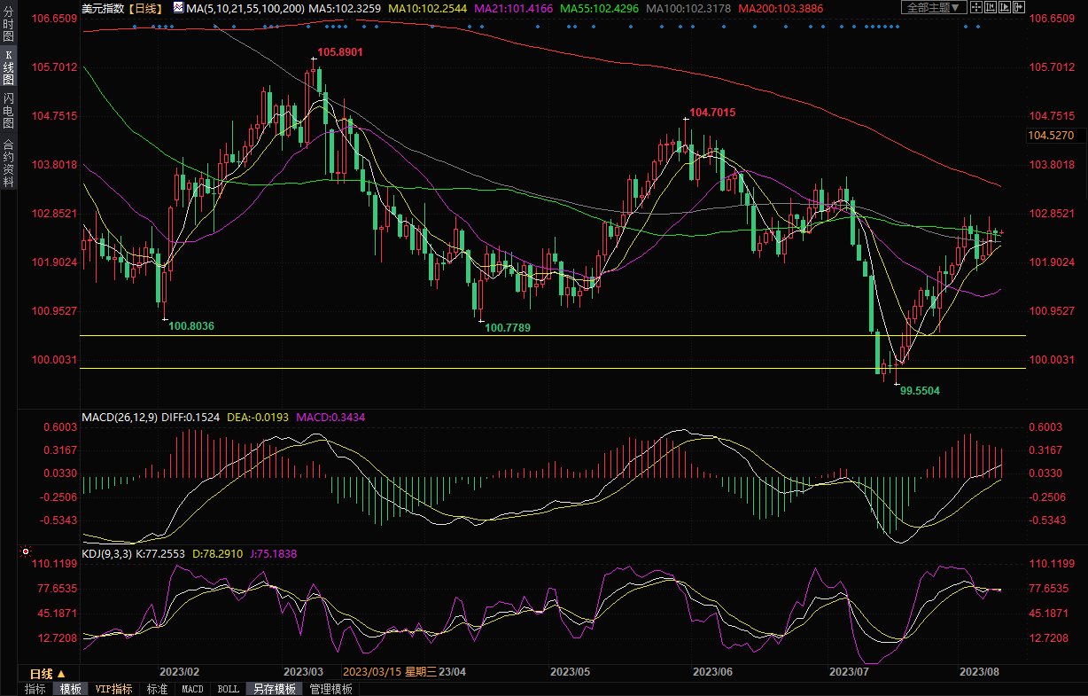 美元周三窄幅震荡,交投淡静且陷于区间,周四亚市也窄幅震荡,目前交投于102.50附近,距离上周创下的近一个月高点102.84不要,投资者等待周四的美国消费者物价报告,以寻找美联储货币政策走向的迹象。
