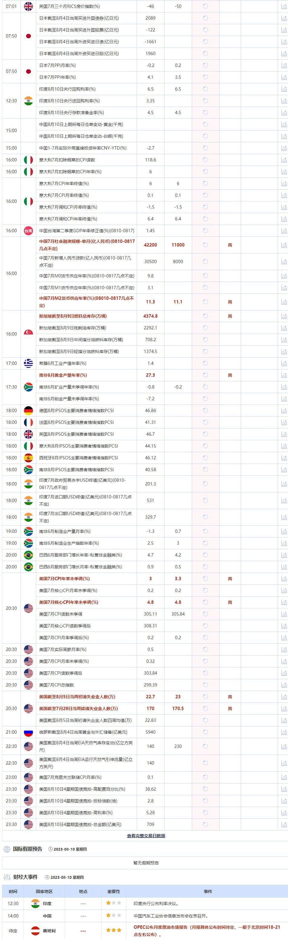 后续及时更新的财历数据请关注:【汇通财经8月10日财经日历】