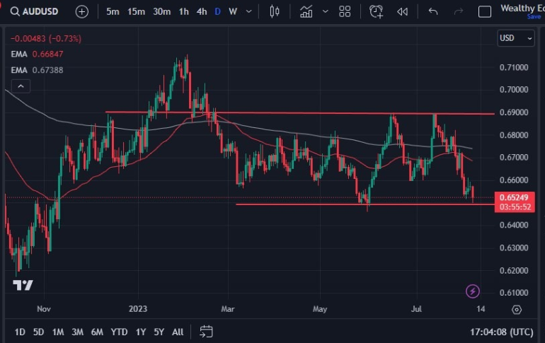 澳元兑美元接近0.65关口,面临通道下边沿考验