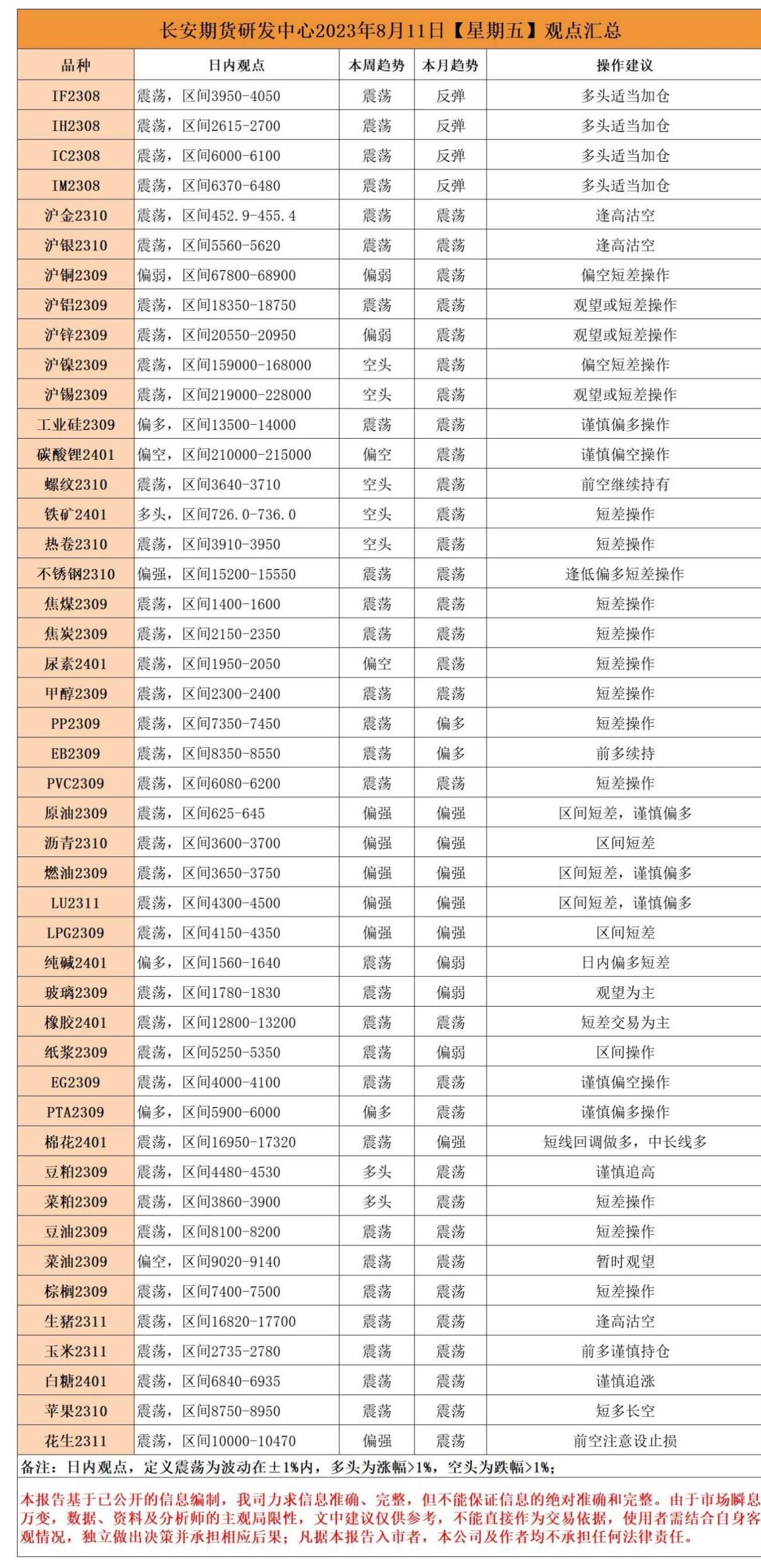 标题:长安期货8月11日早间看盘