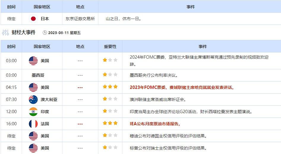 后续及时更新的财历数据请关注:【汇通财经8月11日财经日历】