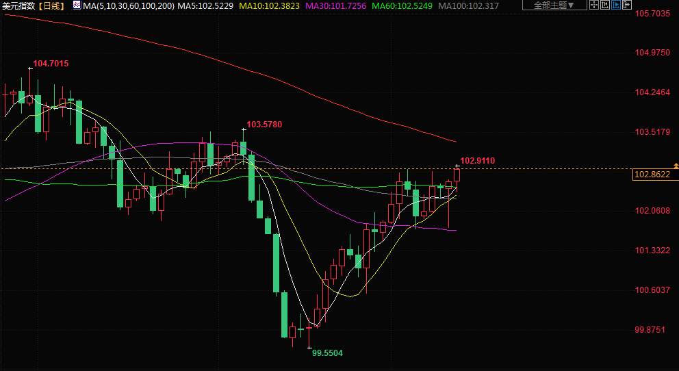 美元指数上涨0.3%,实现连续第四周上涨,指标10年期美债收益率也连续第四周上涨。