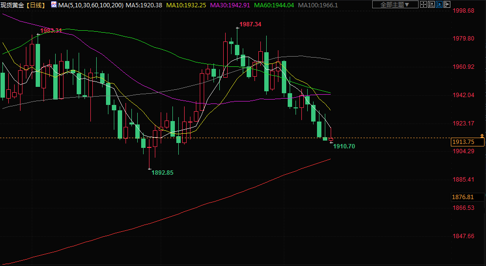 现货白银下跌0.1%,至每盎司22.66美元;铂金上涨0.4%,至910.06美元。两者均势将连续第四周下跌。