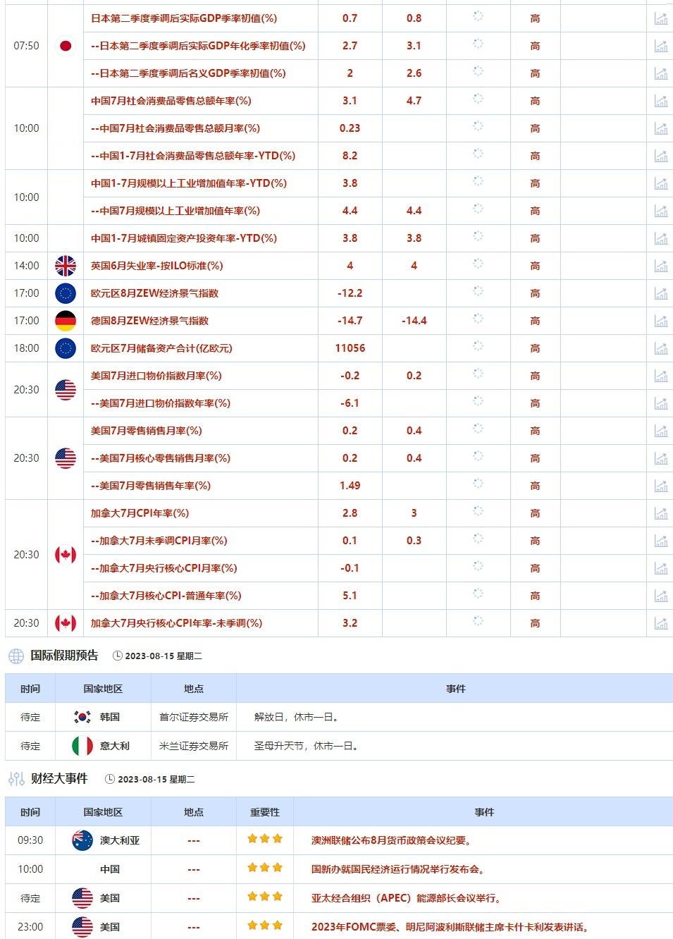 后续及时更新的财历数据请关注:【汇通财经8月15日财经日历】