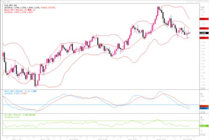 尾盘持平于1.0904。周二当天,美国商务部称,7月美国零售销售环比增长0.7%,表明尽管美国联邦储备理事会(FED/美联储)为抑制通胀激进加息,但需求仍保持了韧性。数据也使美元在近期的水平保持稳定。欧元当天公布的8月ZEW经济景气指数为-5.5,前值是-12.2。数据有所改善,但给到欧元的支持作用不大。反而,近期由于欧洲能源担忧再度升温,施压欧元出现下滑的走势。当前无论4小时还是日线图上,欧元都受压于各短期均线下方,汇价继续向布林带通道下轨线滑落,技术指标也未现转向信号,
