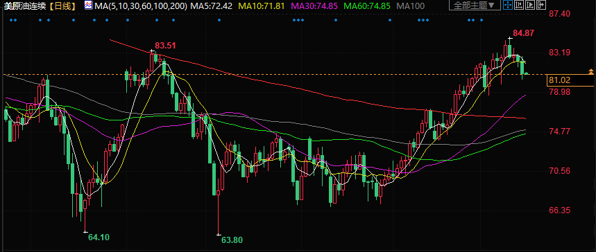 美原油交投于81.00美元/桶附近;油价周二下跌近2%,因市场对亚洲需求担忧增加,且惠誉警告可能被迫下调部分美国银行评级,增加了经济下行风险。