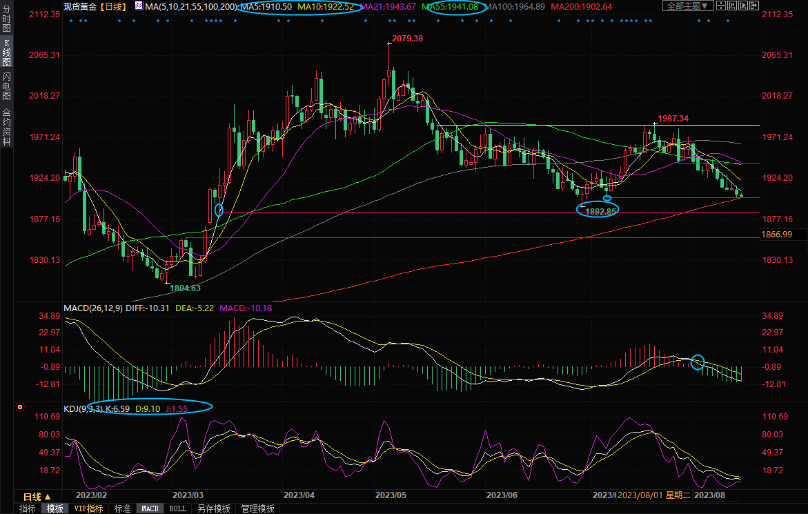 目前来看,金价短线可能会跌破200日均线1902.64附近支撑,并进一步下探6月份低点1892.85附近支撑,能否进一步下破,还有待观察。