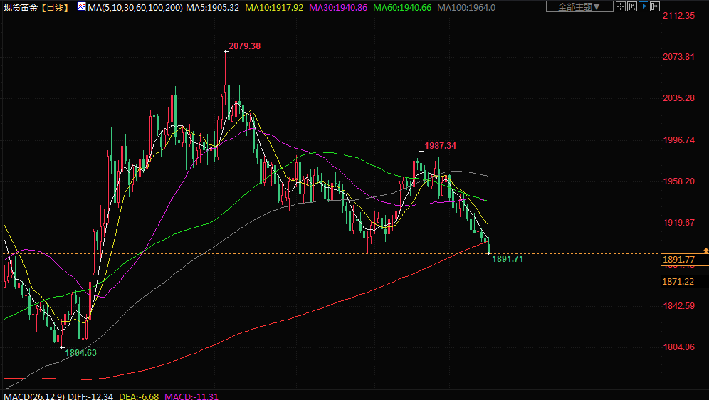 自5月初突破2,000美元的关键水平以来,金价已经下跌了8%以上,每盎司跌幅超过170美元,美国公债收益率反弹和美元走强令不孳息黄金的吸引力下降。
