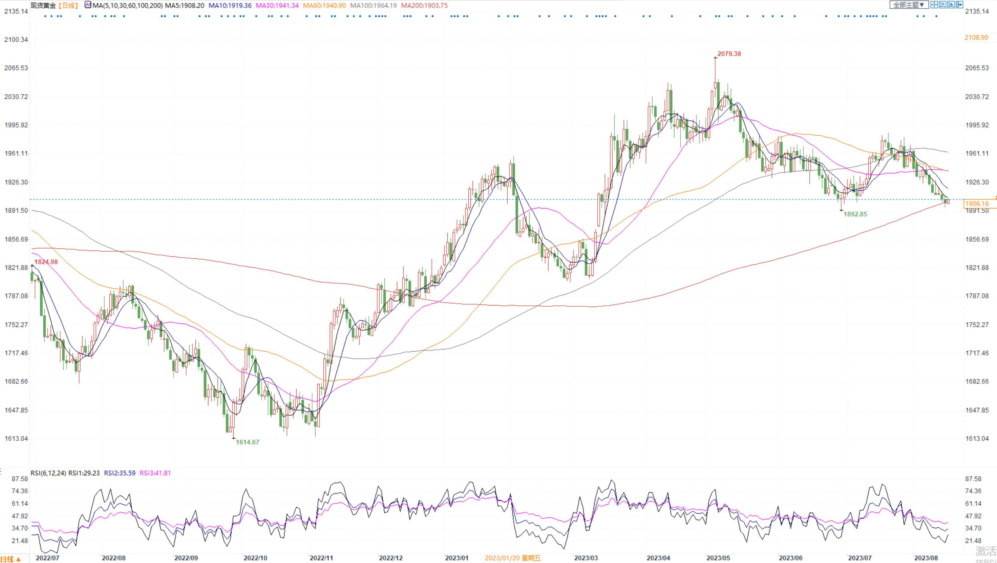 美元指数、美国国债收益率均上涨,对贵金属起到一定的打压力量。此外,美国7月PPI同比上涨0.8%、高于市场预期增长0.7%,环比上涨0.3%、为一月份以来的最大增幅。PPI的超预期叠加美联储官员近期较为鹰派的发言使得市场对加息的预期有所反复,金银目前陷入震荡走势。展望后市,美国通胀有所放缓,软着陆预期增强,短期内预计贵金属价格或以震荡为主,重点关注今夜美国零售数据的公布。操作建议短线思路。