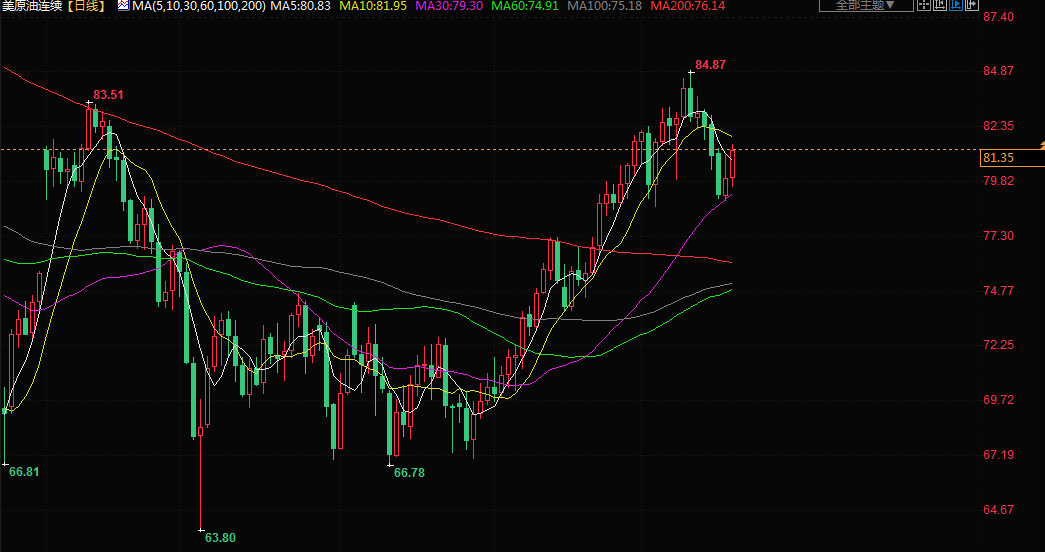 布伦特原油期货上涨0.8%,结算价报每桶84.80美元。