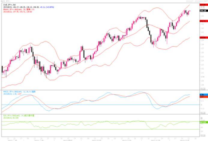 上涨0.55%,报收盘于146.21。经过前两个交易日的技术性获利调整后,市场似乎一来是对日本央行或会干预的防范,二来也是在寻找坚实的支撑位置。在美国和日本央行的货币政策未有大的改变场景下,套利交易模式下的多头美元交易节凑应会继续进行之中。4小时图上,美元/日元似乎在145.00水平附近获得阶段性的支撑,技术指标继续维持着上摆之态,显示美元/日元经过短暂技术性回调之后,趁低抄入盘仍旧支撑着美元的走高。而日线图上,中短均线均支撑着汇价走高,显示美元多头处于绝对优势之中。预料美元/日元将会不断被测试高点以及日本央行的容忍警戒水平。