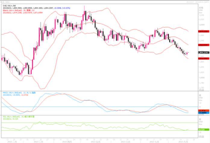 技术层面上,日线录得小幅阳线,结束连续近5个交易日收跌表现,当前金价企稳于日线移动平均线压力位价格下方,短期略呈反弹但并未改变日线技术指标偏空排列形态,随着反弹幅度扩大日线RSI将有可能摆脱阶段性超卖价格形态。小时线显示,当前金价逐步企稳于小时线技术指标支撑位价格上方,当前整理走势加剧小时线移动平均线向上交叉排列维持短周期偏多指引参考。连续走低底部调整走势逐步显现,加剧短期震荡走势。