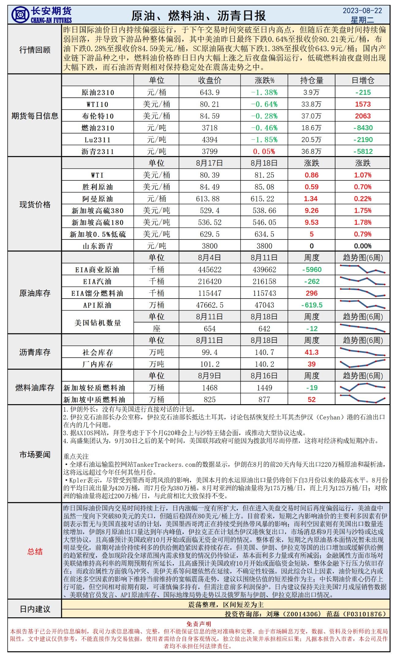 标题:长安期货8月22日原油早评:供给趋紧程度小幅缓解,油价或维持宽幅震荡