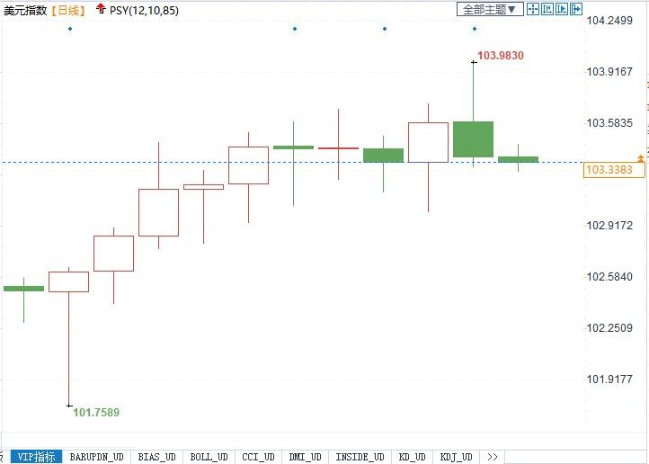 美元指数报103.33