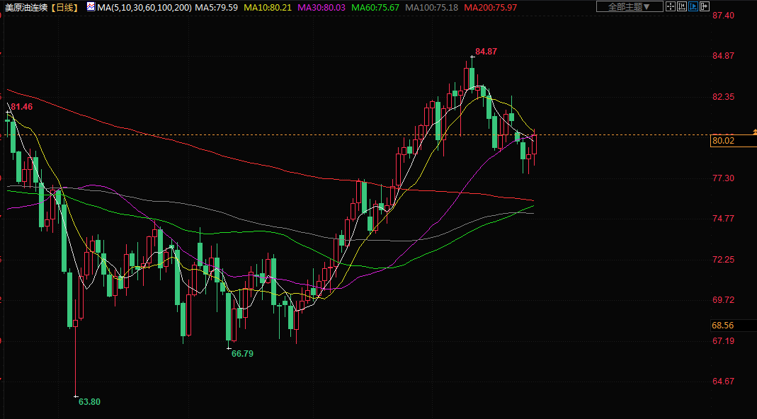 布伦特原油期货上涨1.3%,结算价报每桶84.48美元;美国原油期货上涨1.0%,结算价报每桶79.83美元。