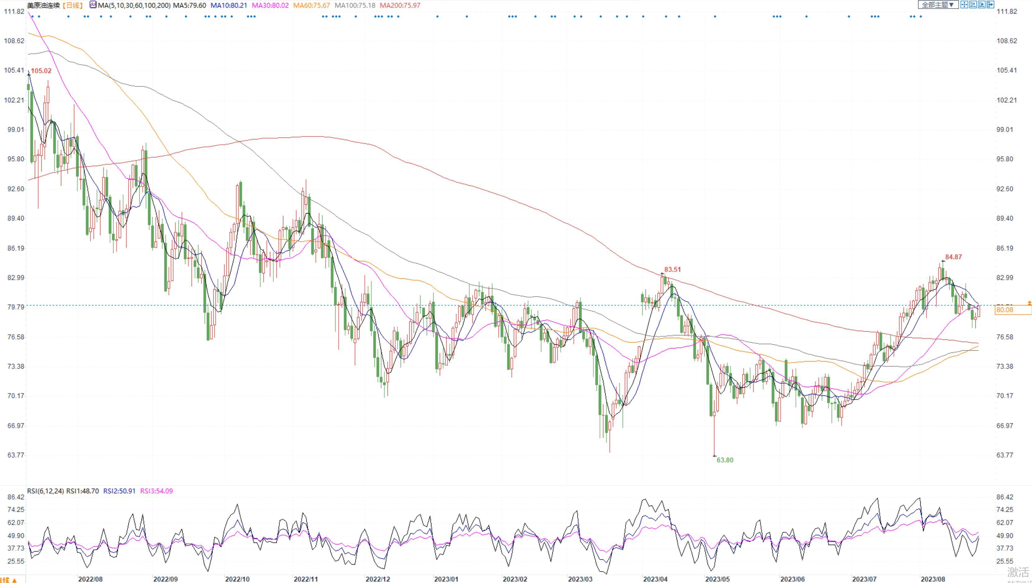 美元指数上涨。美国8月Markit服务业PMI初值降至51,低于预期值52,创2023年2月以来新低;8月Markit制造业PMI初值降至47,低于预期值49,同时创2023年2月以来新低。经济数据的再次走弱给予金银上行支撑。目前市场关注的重点落在了本周五在美国怀俄明州杰克逊霍尔举行的年度全球央行年会,美联储主席鲍威尔的发言将为未来金价走势定下基调,并有可能暗示24年的政策前景。展望后市,美国通胀有所放缓,软着陆预期增强,短期内预计贵金属价格或以震荡为主,重点关注本周美联储主席鲍威尔发言。操作建议短线思路。