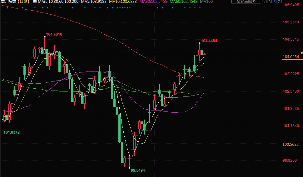 美元指数下跌0.12%,报104.03,上周五曾触及6月初以来最高104.44点。