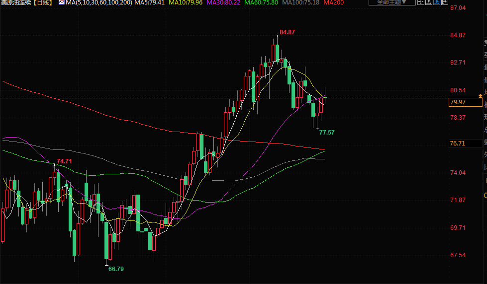 布伦特原油期货收低0.06美元,报每桶84.42美元,稍早曾高见85美元以上。美国原油期货收高0.27美元,或0.3%,报每桶80.10美元。